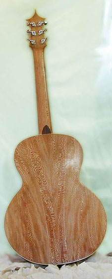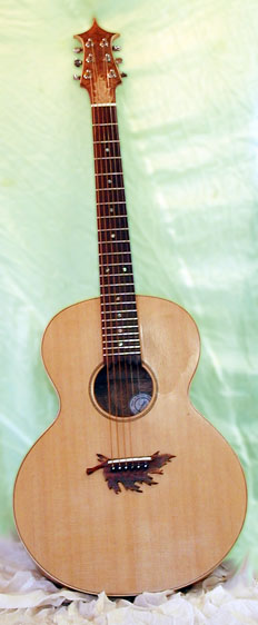 The Palouse Orchestra Model is one of my first designs. It is 42" in total length. The body is 20" long with a 15" upper bout and a 10.5" lower and is 3.5" deep at the neck and 4" at the tail. Although I don't normally put a cutaway on this model, I have and it retains the clean even tone and good bass response of the standard model.
