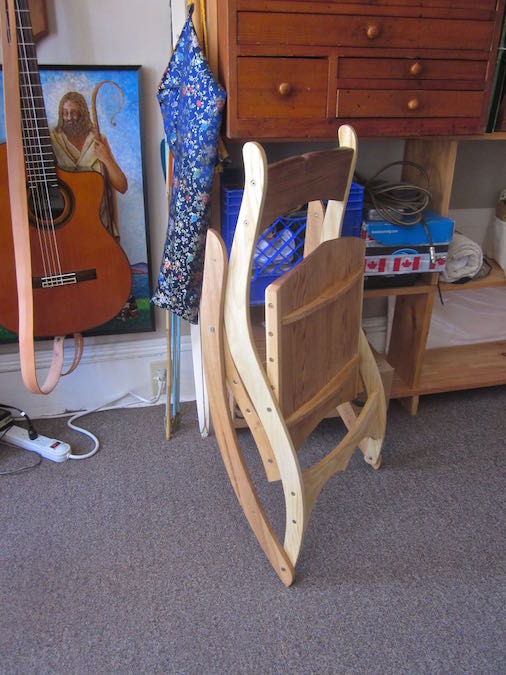 This small folding rocking chair is made primarily from Ash with a back and seat from Redwood